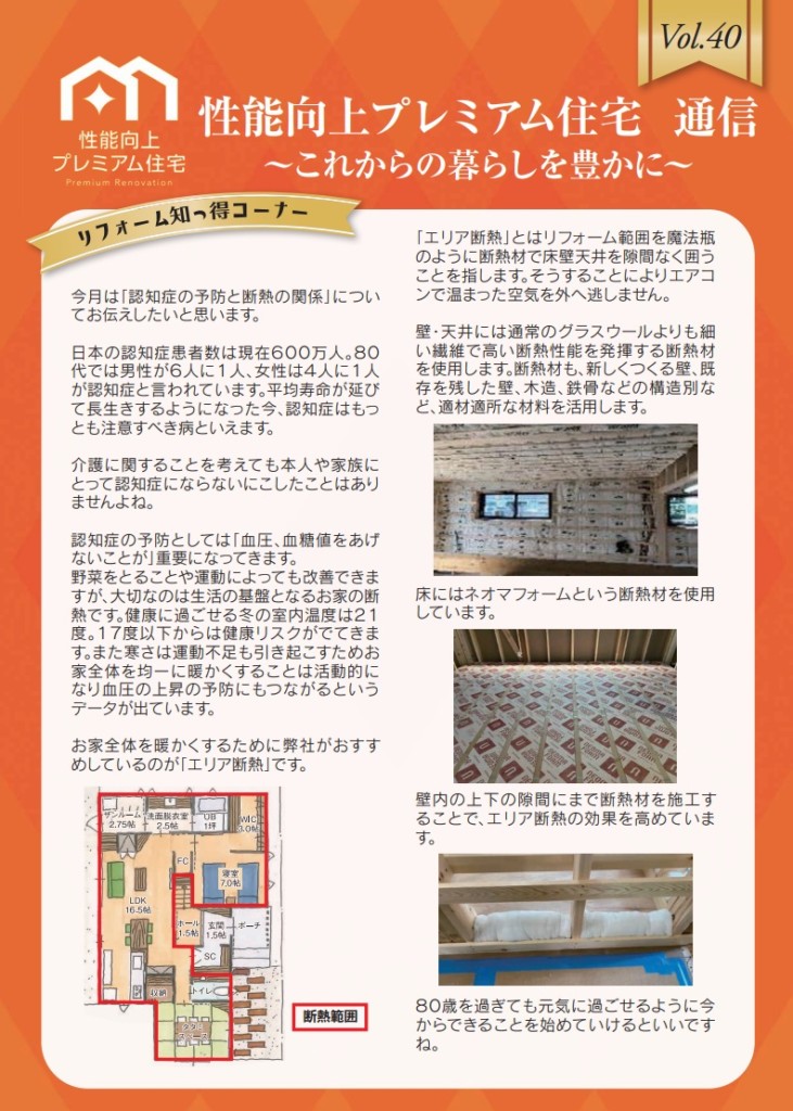今月は「認知症の予防と断熱の関係」についてお伝えしたいと思います。