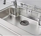 シンク奥に汚れた水をとらえる幅広の段差を設けるとともに、どこからでも段差に向かってスピーディに が流れる底面形状を実現しました。