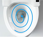 渦を巻くようなトルネード水流が、少ない水を有効に使って、しつこい汚れも効率よく洗浄。便器ボウル面をまんべんなく、しっかり洗います。
