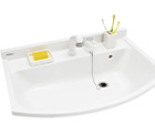 洗面ボールは人造大理石を採用。衝撃に弱く割れやすい陶器製にくらべ衝撃につよい洗面ボールです。
