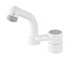 コンパクトで水はねしにくい水栓です。洗髪時は46mmリフトアップでき、両手が使えます。