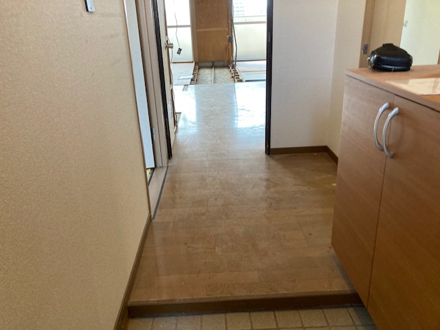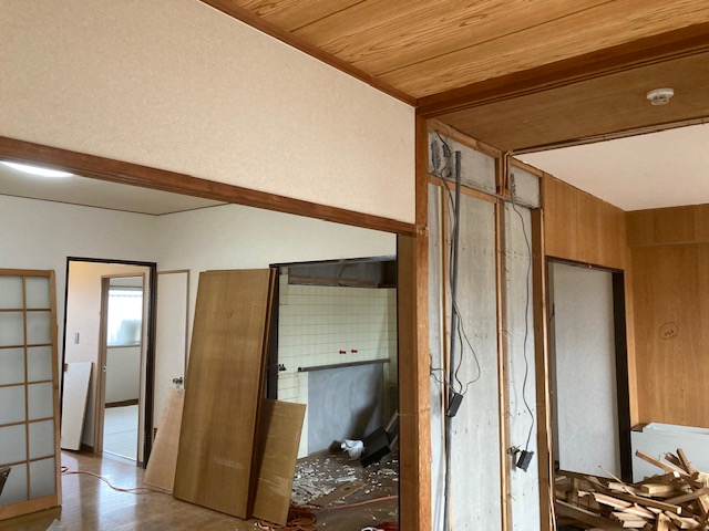 北九州市八幡西区のお客様のキッチン、浴室、洗面、トイレ、廊下、リビングのリフォーム工事の様子です。