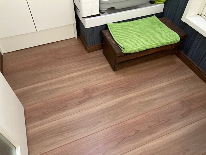 建具交換後 床を上げて新しく洗濯機パンを取付。