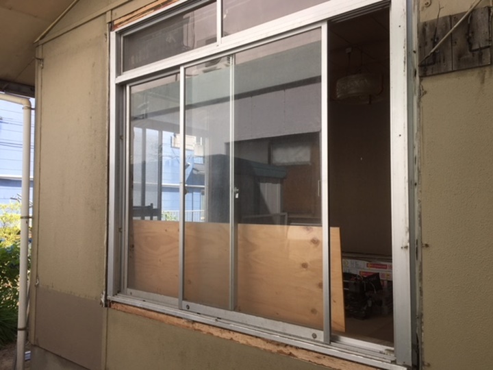 北九州市八幡西区 N様邸全面リフォーム工事のサッシ工事の様子です。 断熱性能の高い2重ガラスに変更いたします。