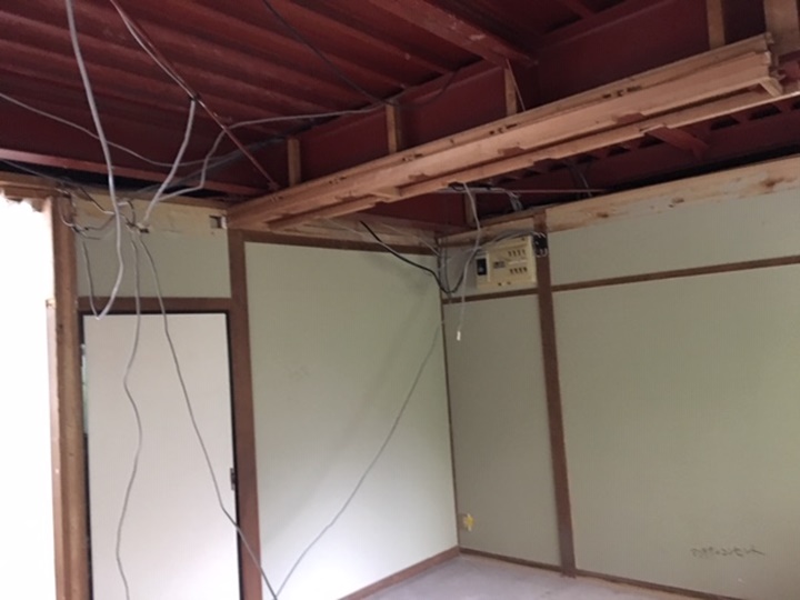 間仕切り解体後外部に面する部分の断熱材を入れ替えます。
