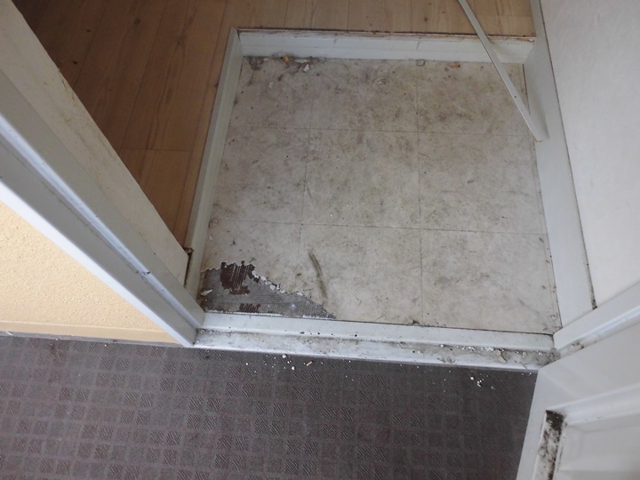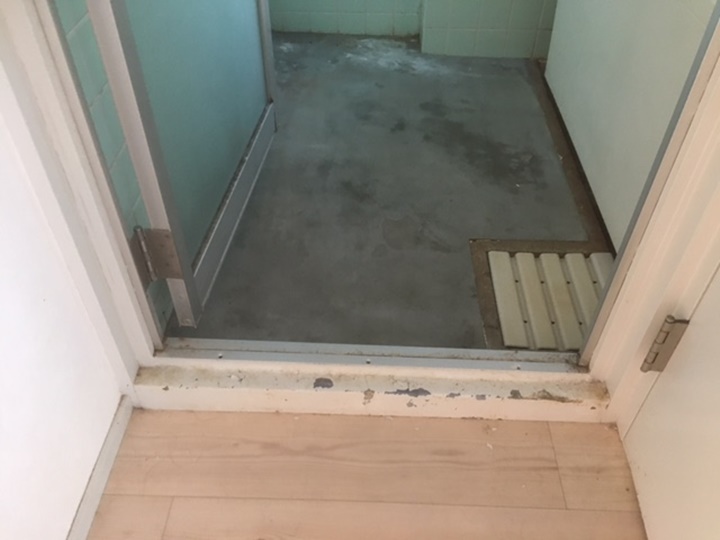 浴室コンクリート土間に浴室用のシートを貼りました。