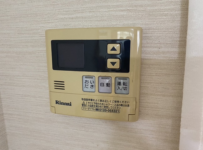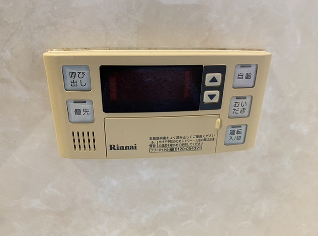 施工後の浴室リモコンです。水が入らないようにコーキングをしっかりとします。