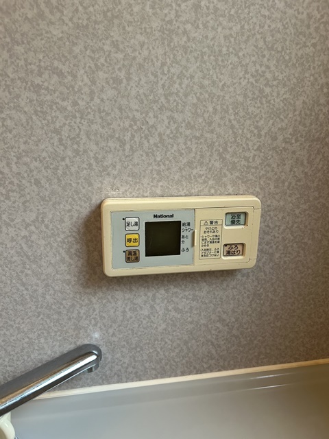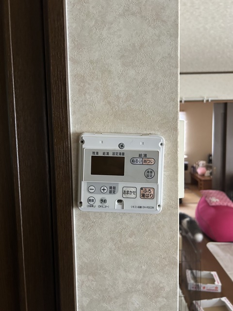 施工後の浴室リモコンです。水が入らないように周りをコーキングしています。