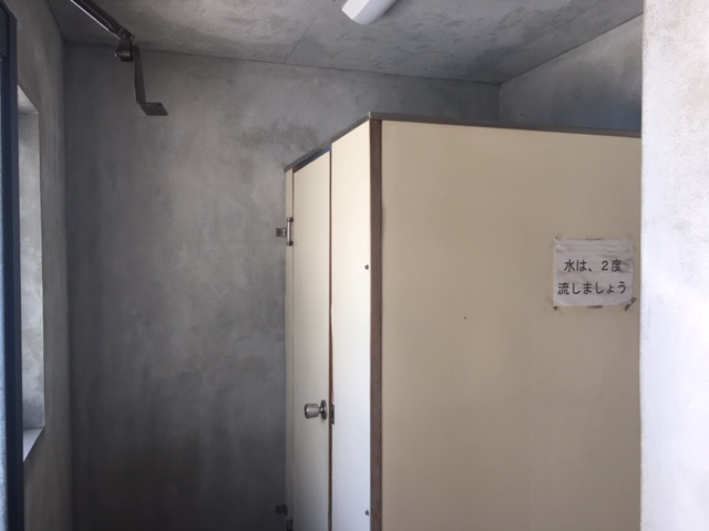 解体後、排水芯を移設して土間の補修をします。壁、床塗装後新しい便器を取付いたします。