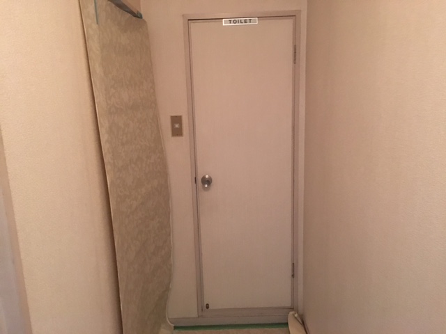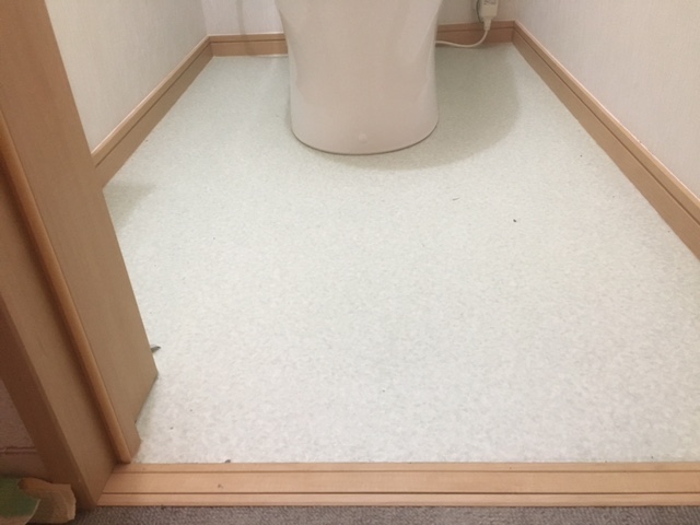 トイレ取り外し段差の付いた入口カマチを取ります。