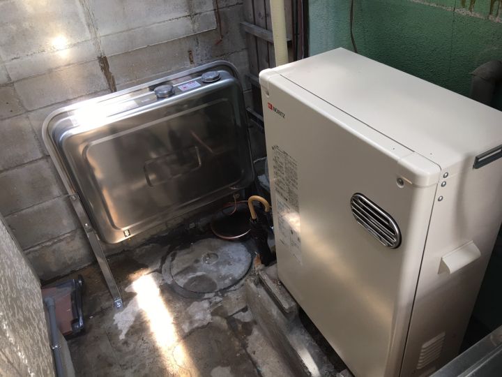 給湯器交換前品番 クリーンエース石油小形給湯器 TPX-361 小倉北区のお客様の給湯器交換工事の様子です。
