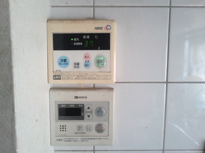 古賀市T様邸の給湯器交換工事の様子です。 ノーリツ給湯器追い炊き付から同等品24号オート エコジョーズ給湯器に交換です。