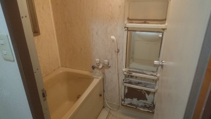北九州市O様邸、ユニットバス、洗面所暖房機取付工事の様子です。