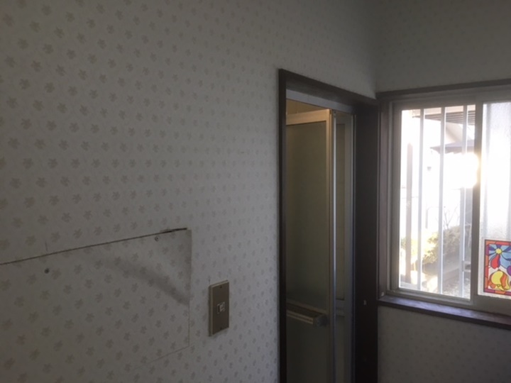 遠賀町M様邸、ユニットバス、洗面所、エコキュートリフォーム工事の様子です、浴室窓も交換します。