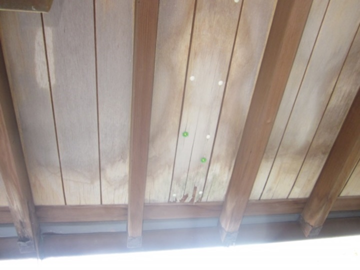 玄関屋根、板金浮き雨漏り