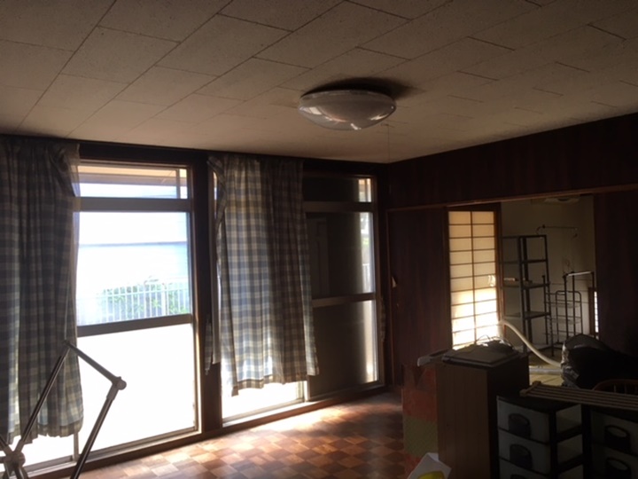 現在キッチンとリビングが間仕切られていますが壁を解体して広く使用できるようにします。