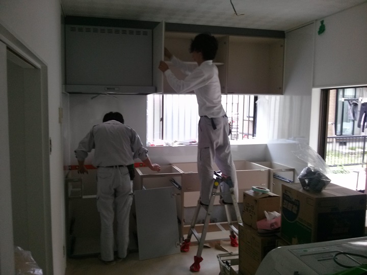 水巻町のO様邸のキッチン工事です。 ホームページからの問い合わせ、ご注文有難うございます。 施主様自らキッチンの解体、キッチンパネル、床クッションフロア、壁塗装を施工されました。 当社はシステムキッチン納品、組み立て、給排水工事、電気工事をさせていただきました。
